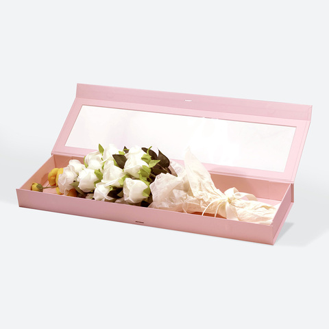 Low MOQ Rechteck Pink Rose Flower Verpackung Blumen Geschenk boxen mit klarem Fenster deckel