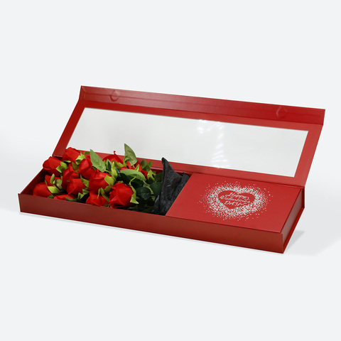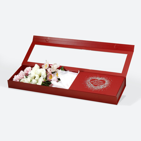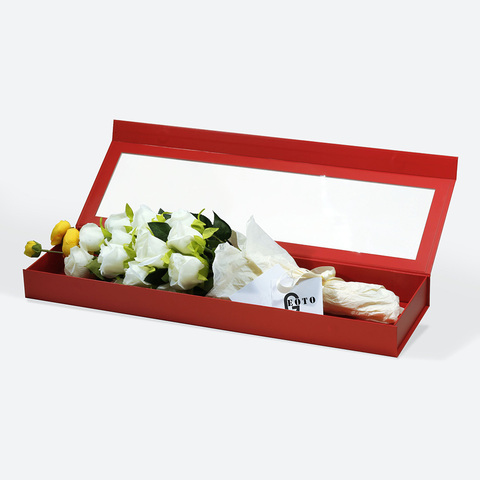 Premium Clear Window Rote Farbe Blumen karton Verpackungs boxen mit Magnet deckel